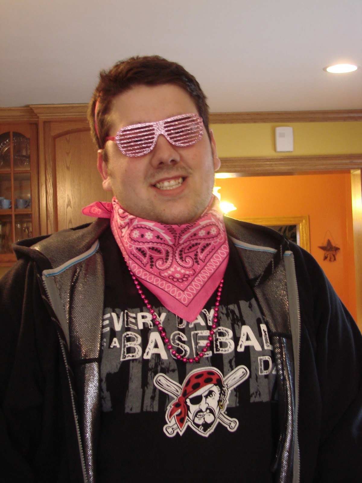 I also had two tables filled with pink and blue dress up items. Guests were instructed to grab a few things off the table to dress up in to express their guess. So if they thought it was a boy, they would choose some blue. If they thought it was a girl, they would dress in some pink things.